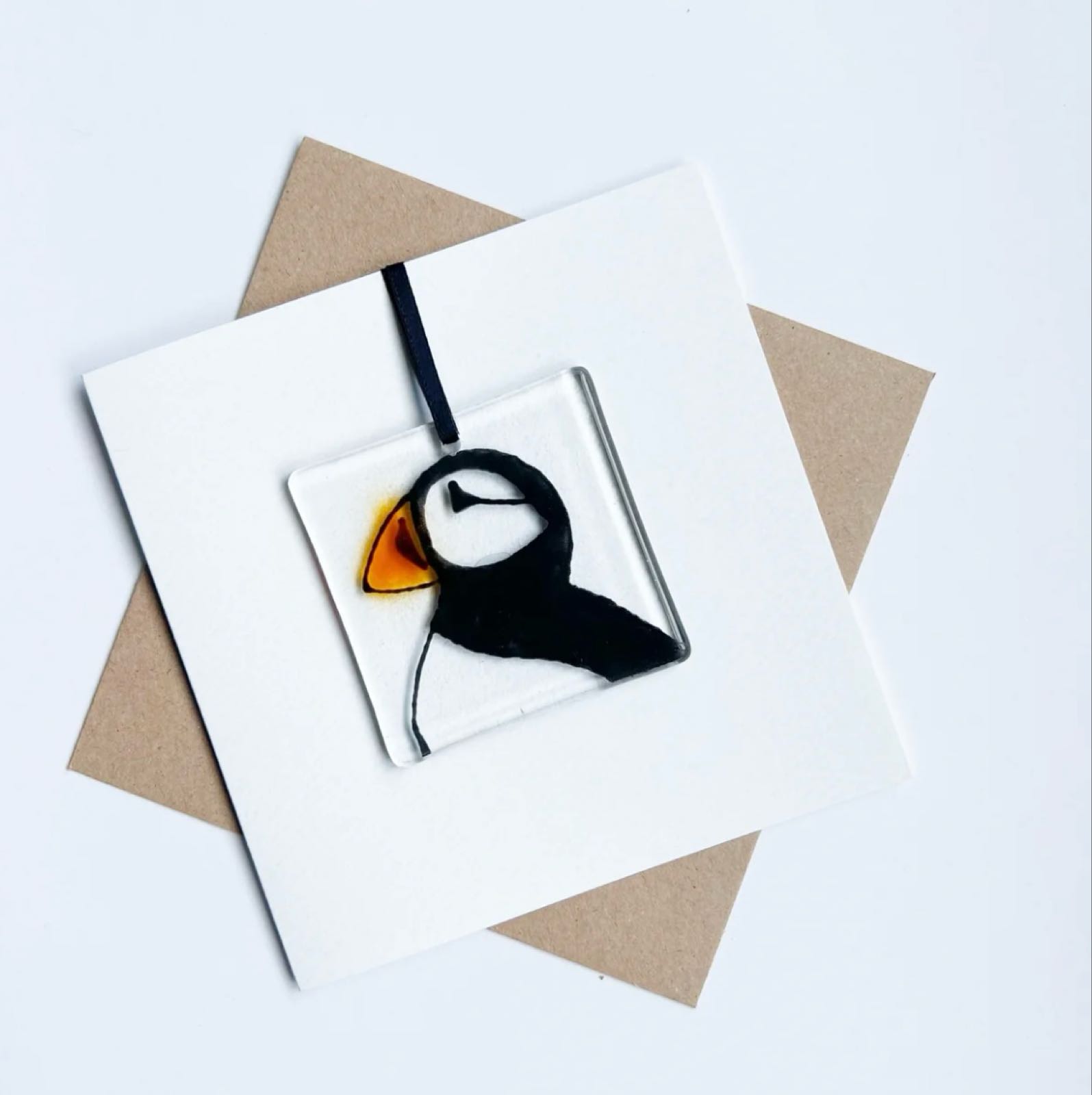 Send a smile with this adorable Fused Glass Puffin Card! Featuring a hand-painted fused glass puffin, known as the “Sea Parrot,” with its vibrant bill and striking black and white feathers. This charming bird, full of personality, is a delightful symbol of Scotland’s coastal beauty. The design can be detached and treasured as a keepsake, making it a perfect gift for bird lovers and sea enthusiasts. A 2-in-1 keepsake that’s sure to brighten anyone’s day.
