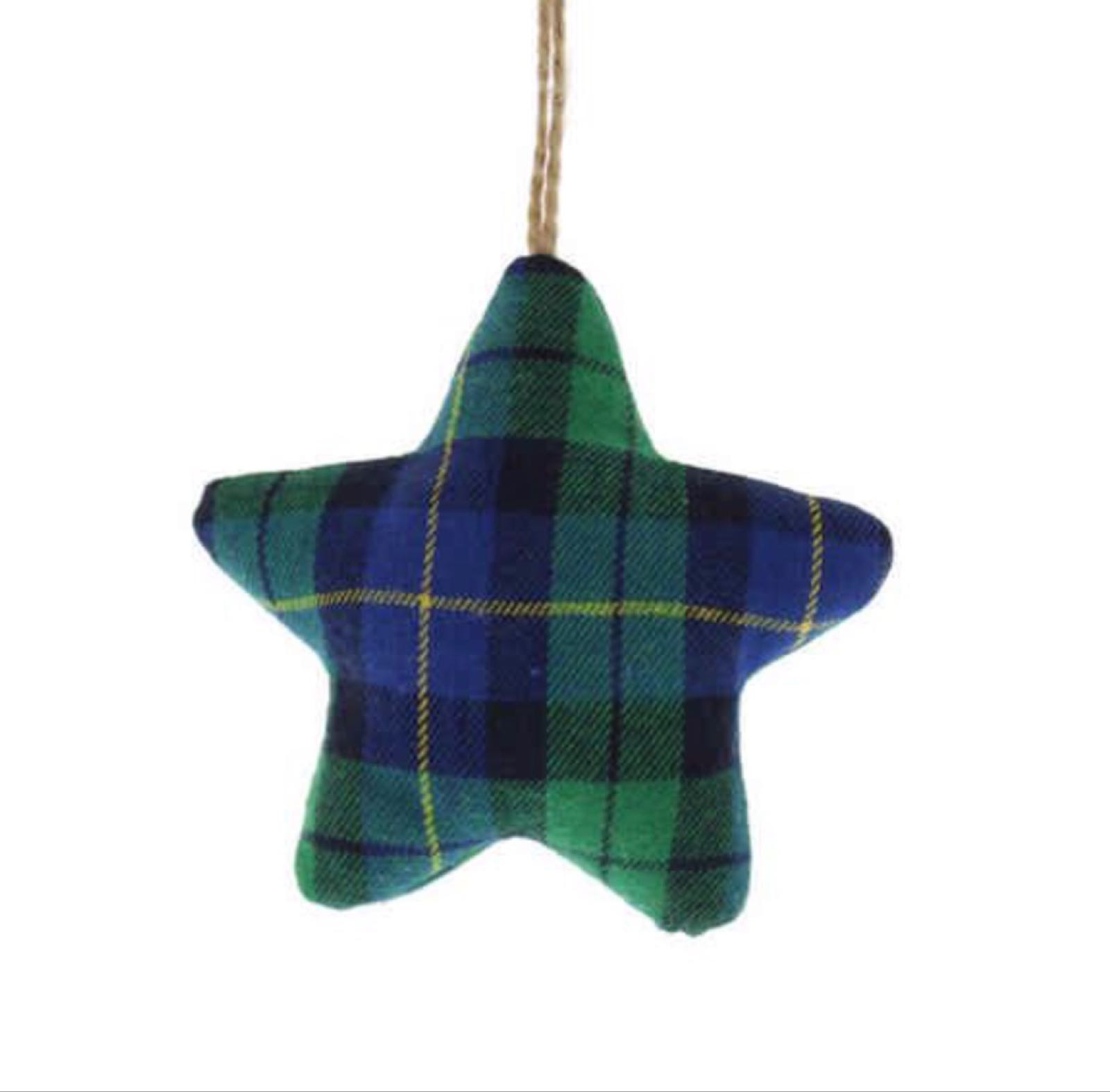 A soft and squishy tartan star, with twine hanger. This item is part of a small collection which includes a round bauble, a heart and a tree.