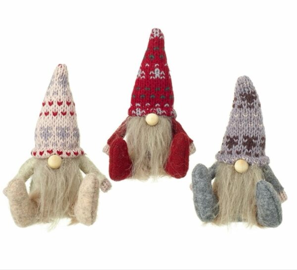 Sitting fabric Gonk or Gnome with cute knitted hat, three assorted colours. With their handsome beards and their smashing knitwear,m these guys are on point for fashion…. I just loved the way they are sitting comfy with their big feet in front of them.